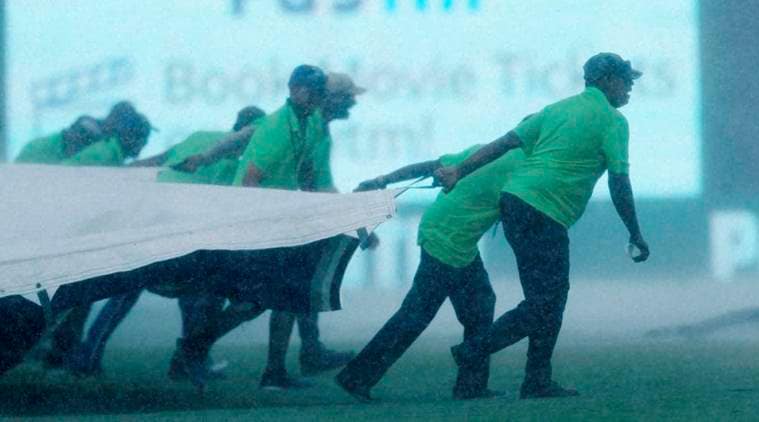 After dismissing West Indies for 143, India were 15 for no loss in two overs when a 15-minute thunderstorm left huge puddles on some section of the field, including the bowler’s run-up at the pavilion end of the ground, forcing the officials to call off the match.